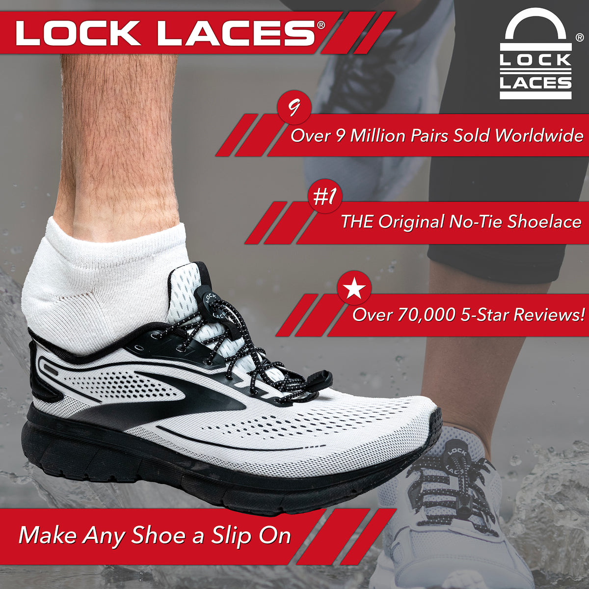 • Includes: Each pair of Lock Laces contains 2 48” elastic laces, 2 lock devices and 2 cord clips...